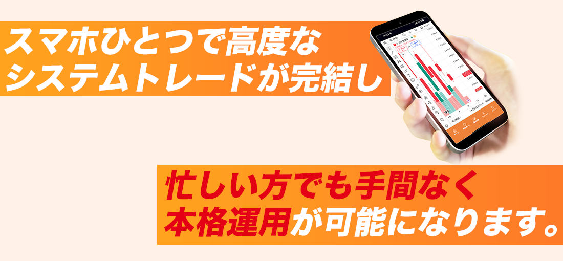 明確なルールに基づく自動売買なので、相場の上げ下げに一喜一憂せず一貫性のあるトレードを実現します。人の感情を排した機械的トレードで、どんな局面でもブレない投資判断が可能です。