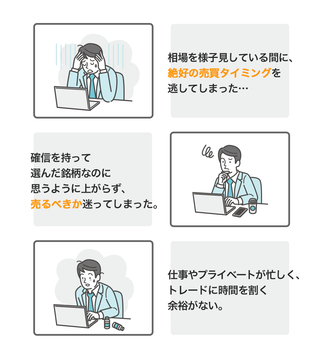肝心の売買の段階で次のような悩みに