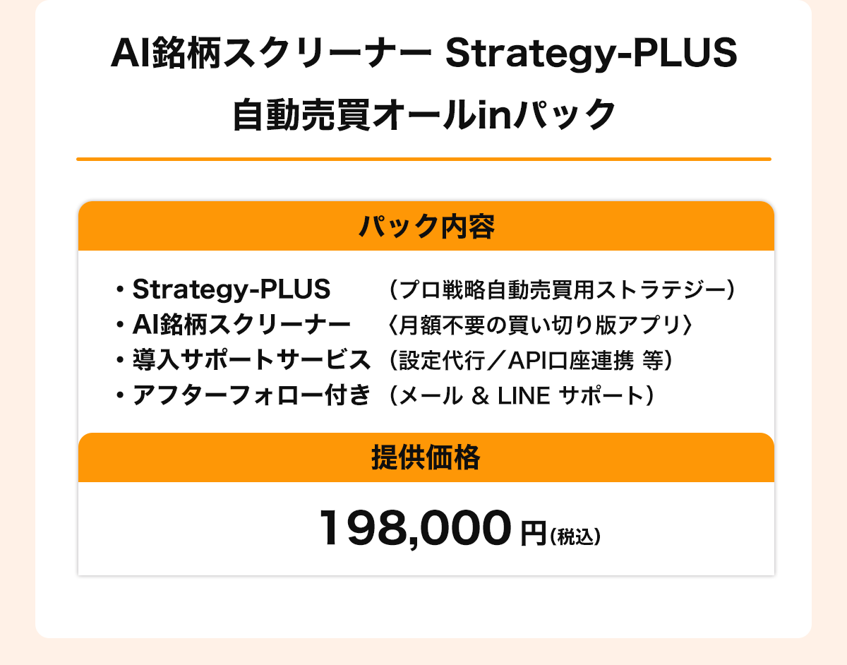 AI銘柄スクリーナーも買い切り版をパックでご提供し、