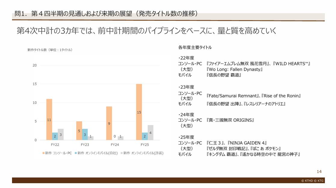 コーエーテクモの目先の注目点は、第4四半期の大型タイトル群が通期計画の達成にどこまで寄与するかです。