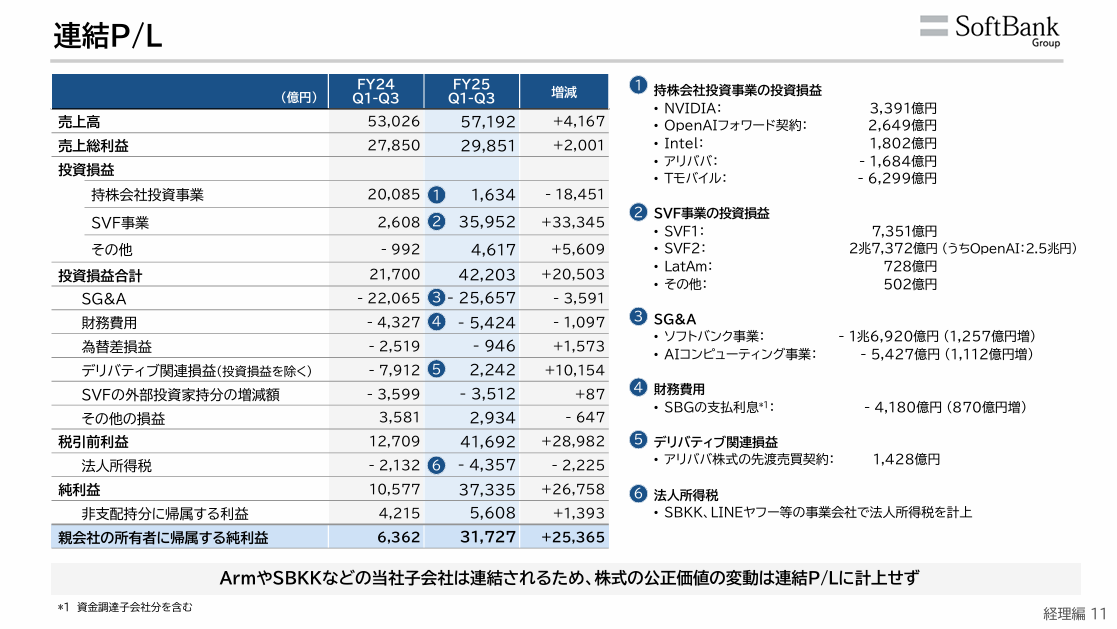 これまで苦戦が続いていたソフトバンク・ビジョン・ファンド(SVF)事業も、OpenAIの利益を除いても利益が出ており、ポートフォリオ全体が改善傾向にあります。