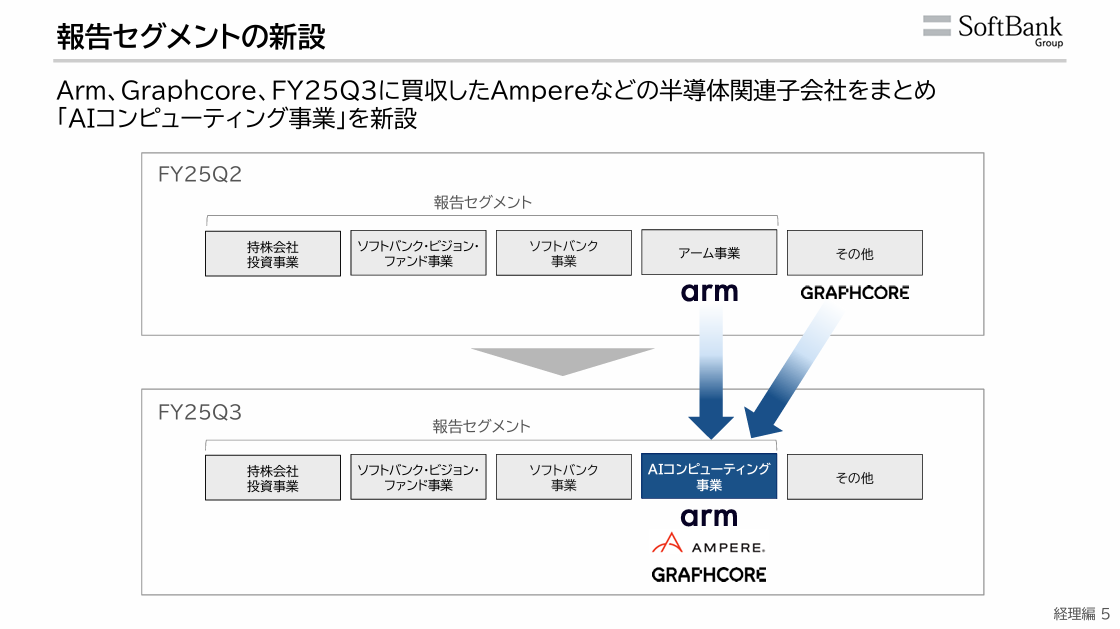 ▼ソフトバンクグループは、今回の決算から新たに「AIコンピューティング事業」セグメントを立ち上げています。