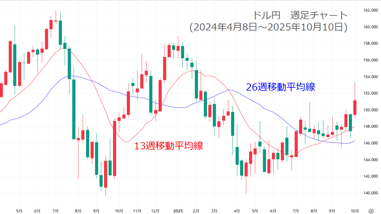 ドル円チャートを見ても、夏に1ドル=147円を挟んだもみ合いが長らく続いた後、円安方向にトレンドが発生している状況です。