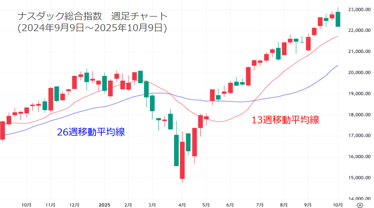 ▼ナスダック総合指数は、9月以降の上昇幅が大きかっただけに、13週線とまだ乖離が大きく、来週にかけてさらに下落幅を拡大する余地がありそうです。