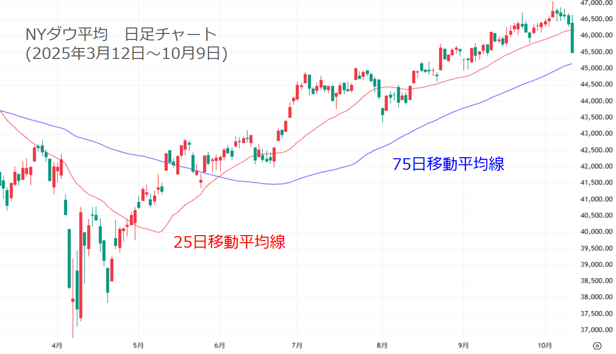 ▼NYダウ平均は、10月10日(金)に9月の上昇分を全て吐き出す形で大きく陰線をつけて取引を終了。