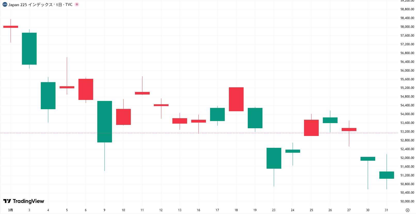 日経平均株価は3月30日に一時5万558円まで下落する場面も見られ、2月の衆院選後の上昇分をほぼ打ち消す、厳しい1ヶ月となりました。