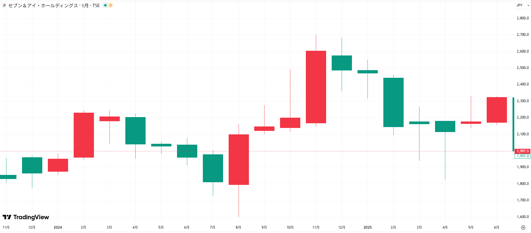 セブン&アイHD(3382)は2024年以降、イトーヨーカ堂やヨークHD(9843)の売却・分社を進めています。完全な親子上場解消には至っていませんが、報道のたびに株価が動意づく状態です。