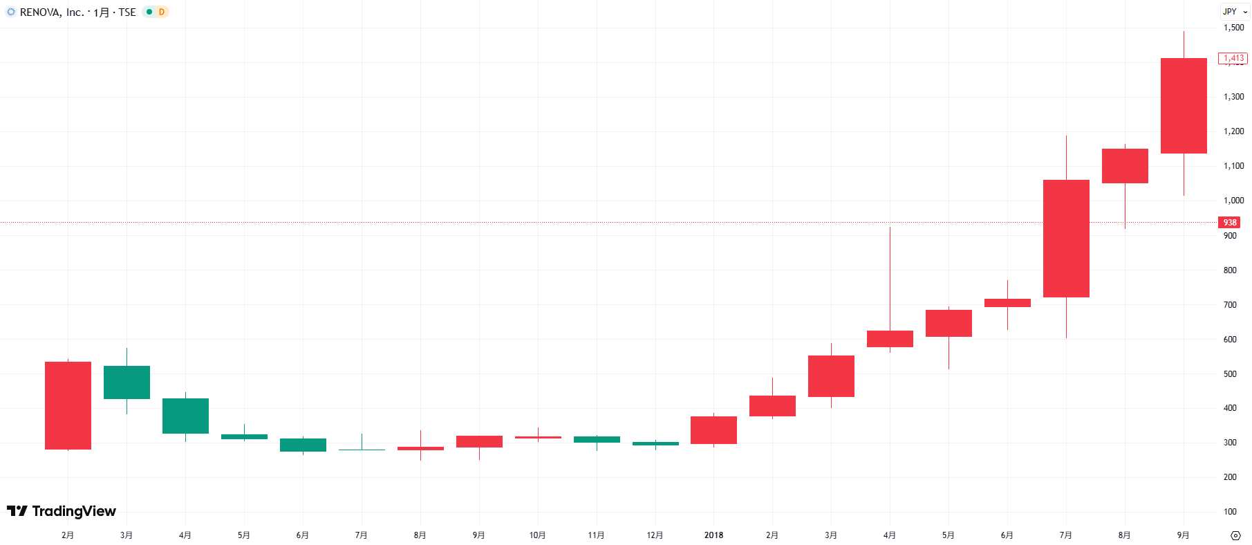 レノバは2017年の上場後、太陽光発電やバイオマス発電の事業を一気に拡大しました。その結果、株価は数倍に跳ね上がり、政策支援と事業拡大が株価に直結する典型例となりました。投資家にとっては、国策テーマの威力を示す象徴的な事例です。