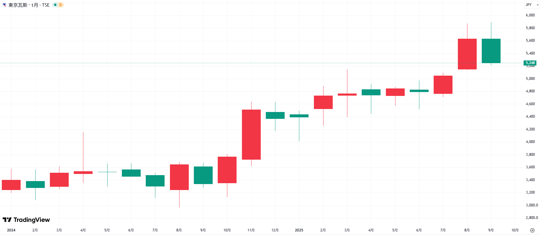 都市ガス事業を基盤に持つ東京ガスは、再エネ電源と水素事業に注力しています。ガス会社としての安定収益を維持しながら、脱炭素社会に向けた成長分野へ事業領域を広げている点が投資家に評価されています。堅実さと成長性を併せ持つ銘柄として、長期投資にも適しているといえるでしょう。