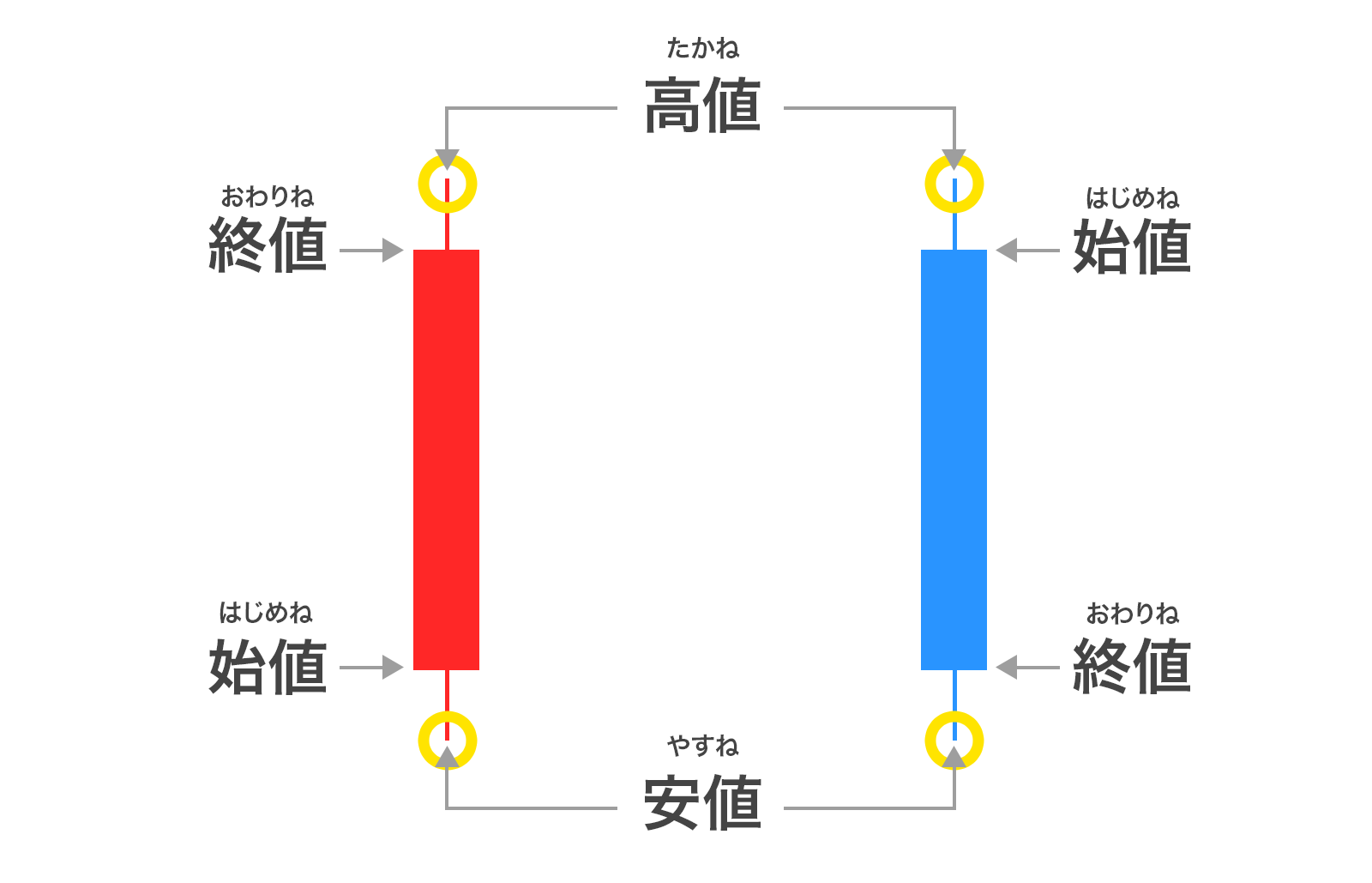 始値(はじめね)・高値(たかね)・安値(やすね)・終値(おわりね)という4つの価格は「4本値」と呼ばれ、多くの投資家に重視されています。