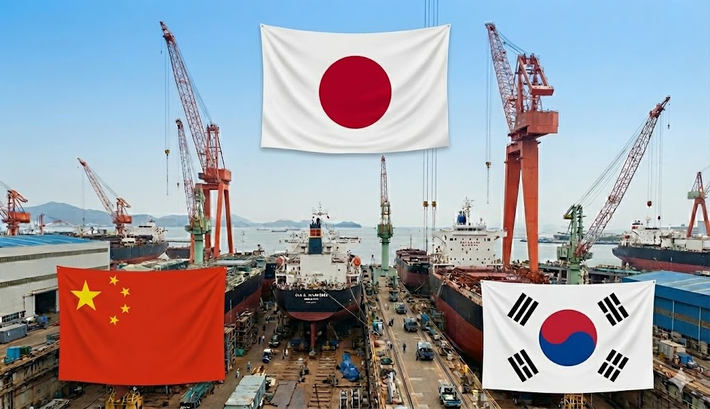 世界の造船市場は、長らく日本、韓国、中国の3カ国がシェアの大半を握る3強の構図が続いていますが、その戦い方は明確に分かれています。