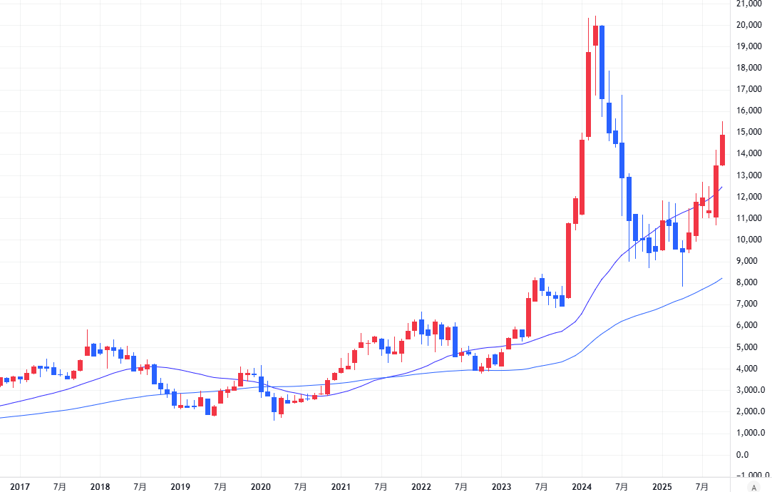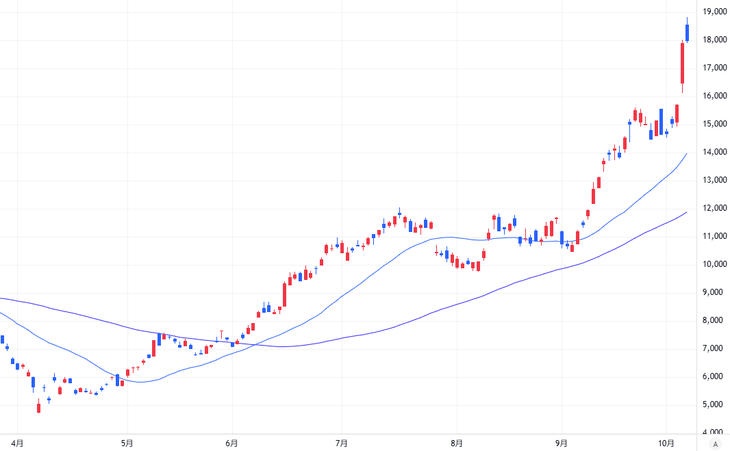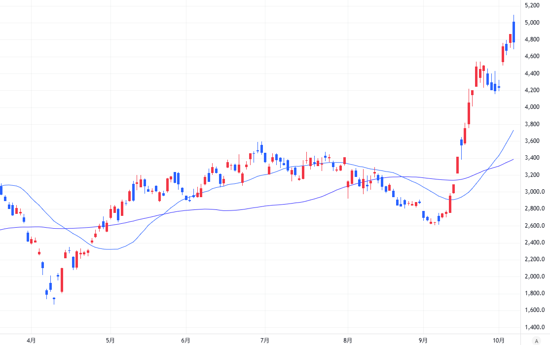 2025年4月から9月にかけて株価は約3.3倍に急騰しました。