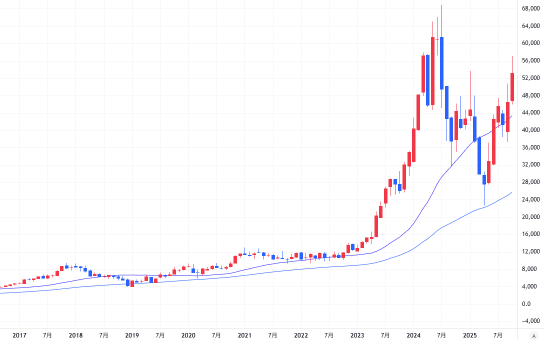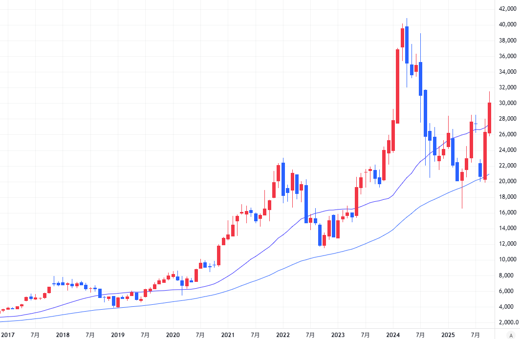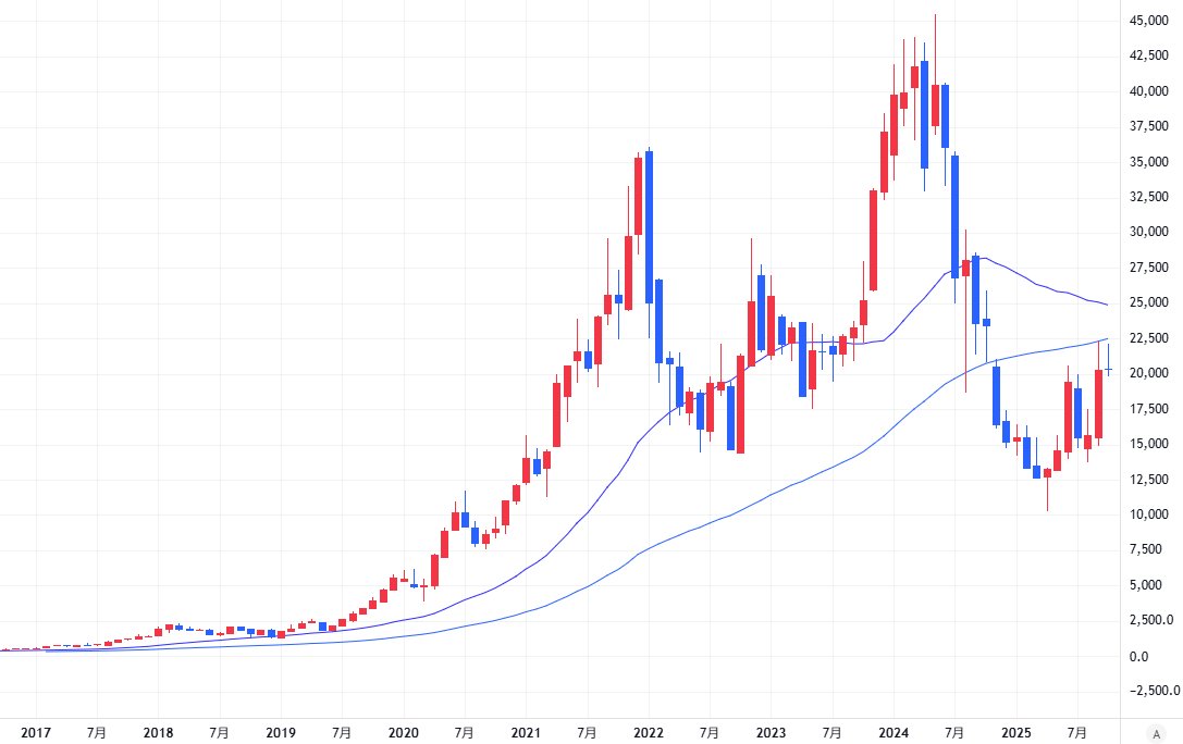 2016年12月から2025年10月までの月足チャート TradingViewより引用